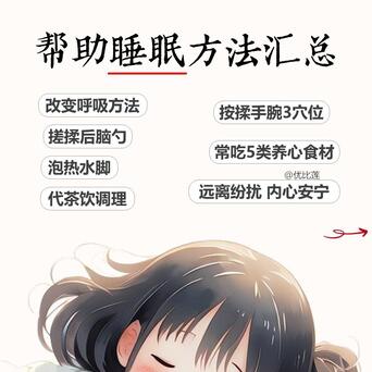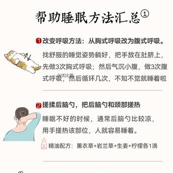 帮助睡眠方法汇总 1、改变呼吸方法:从胸式呼吸改为腹式呼吸。 找舒服